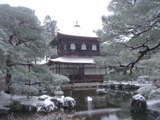 The two storied pavilion is not covered with silver leaves, fortunately this pavilion is original and registered National Treasure.